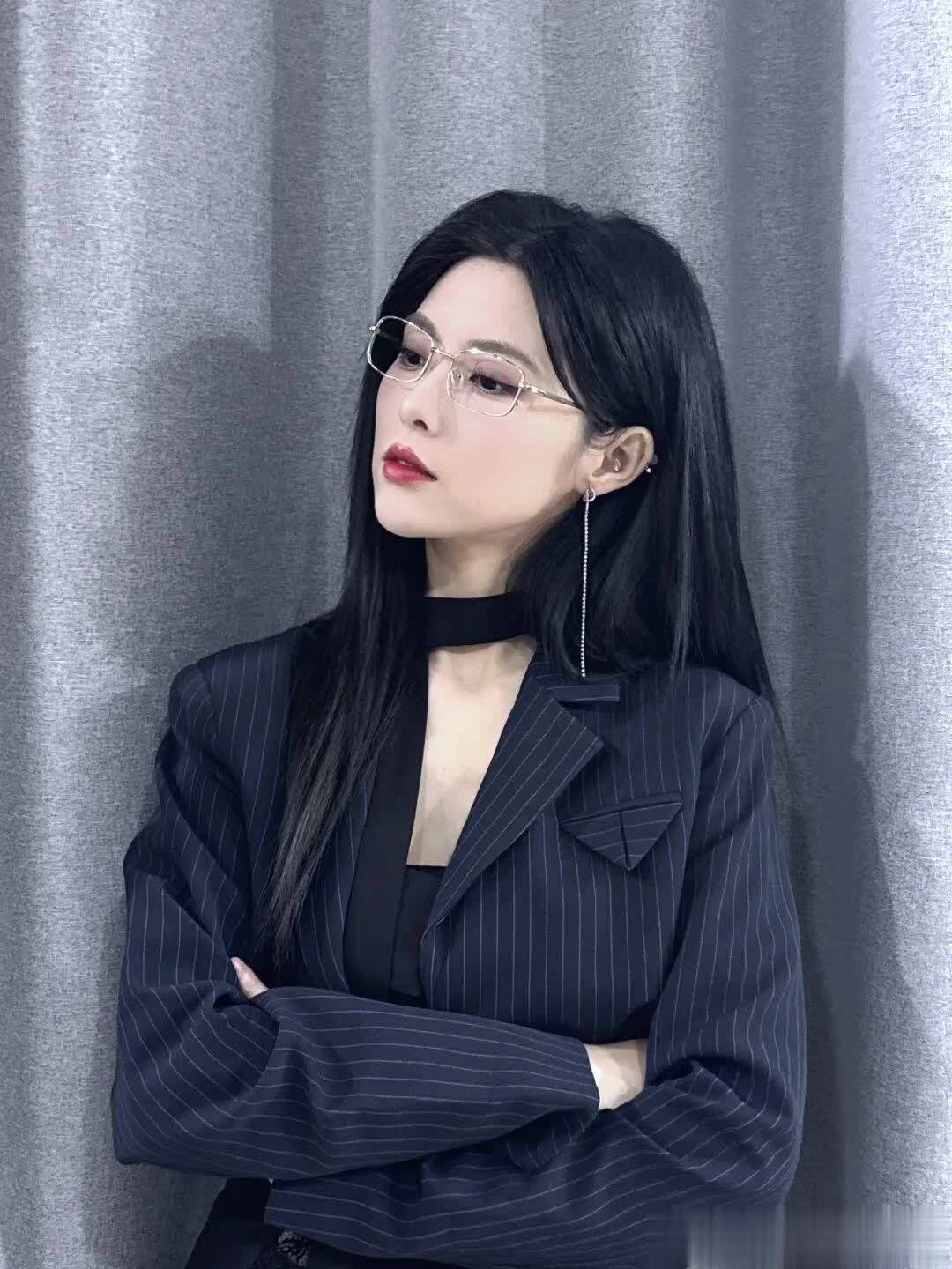 条纹西装简约不乏干练,金丝边的眼镜戴上瞬间就有了氛围感,简直是学术感的极致呈现,充满智慧与灵气。