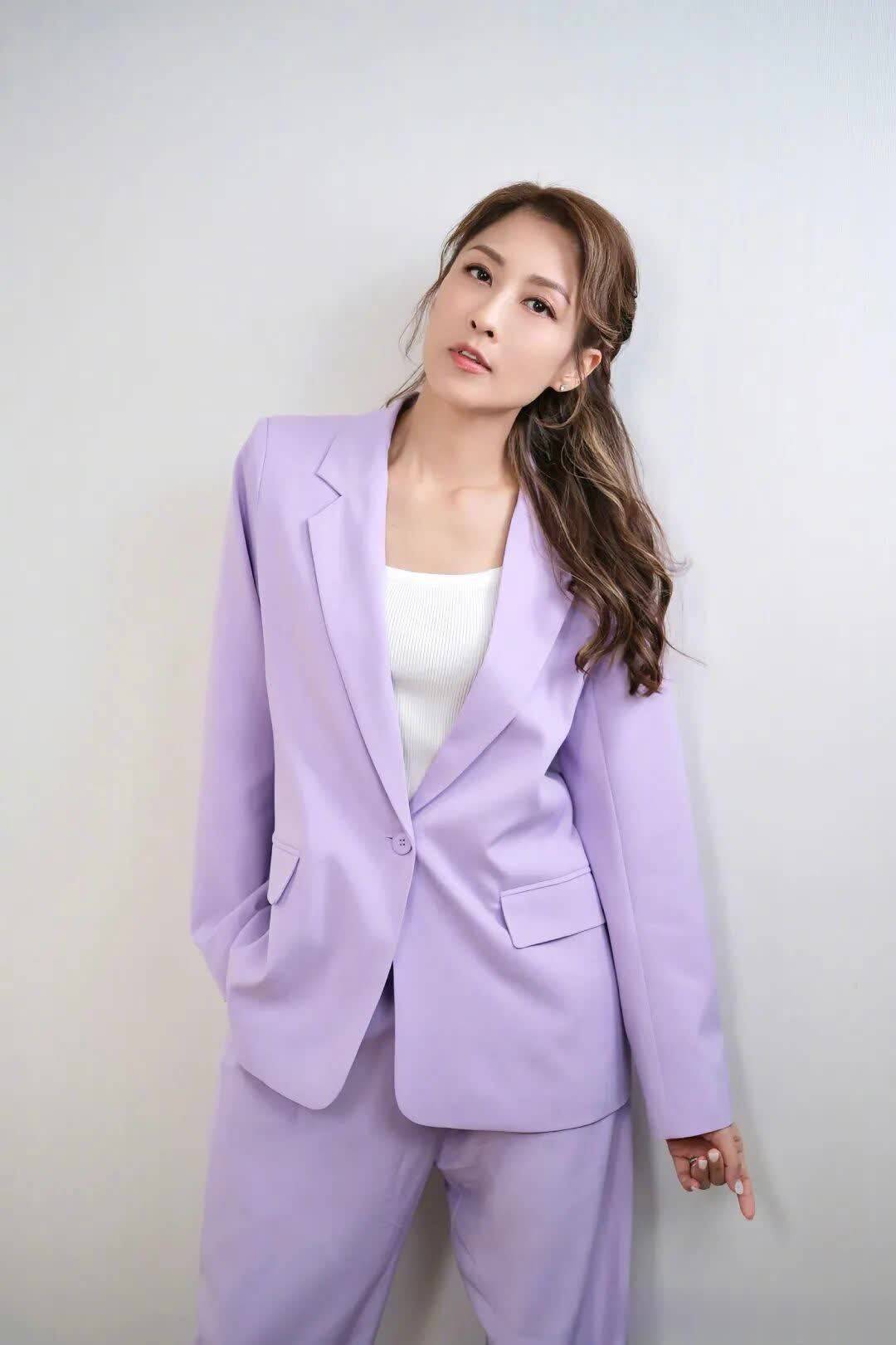 温柔浪漫的紫色西服套装,为冰冷严谨的职场注入些许柔软和韧性,将服装的实用性与自身气质完美融合。